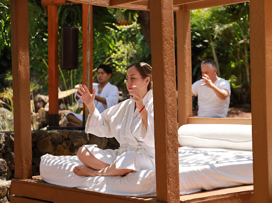 Le bajas el volumen al mundo y te subes a tu propia frecuencia. Mañanas de Breathwork, tardes de activación, noches de integración.